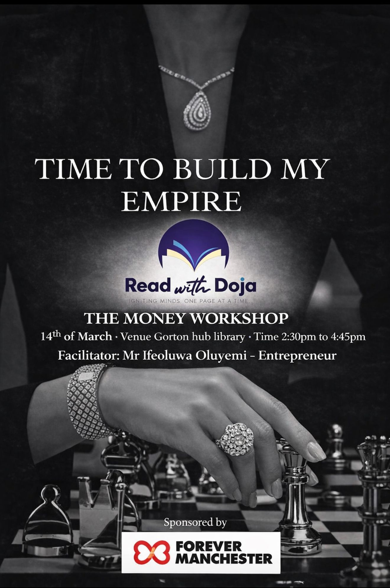 THE MONEY WORKSHOP14th of March • Venue Gorton hub library • Time 2:30pm to 4:45pmFacilitator: Mr Ifeoluwa Oluyemi - EntrepreneurSponsored byFOREVER MANCHESTER