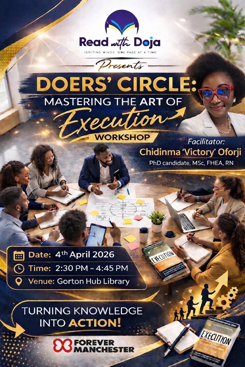 Facilitator: Chidinma 'Victory Oforji PhD candidate, MSc, FHEA, RNDate: 4th April 2026Time: 2:30 PM -4:45 PMVenue: Gorton Hub LibraryTURNING KNOWLEDGE INTO ACTION! FOREVER MANCHESTER